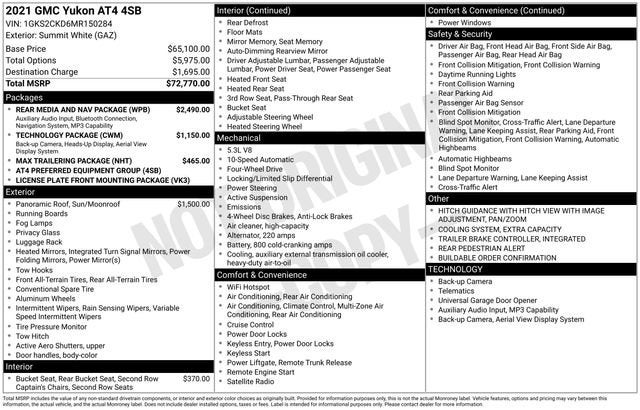 2021 GMC Yukon AT4 4WD 10-Speed Automatic with Overdrive EcoTec3 5.3L V8 Summit White