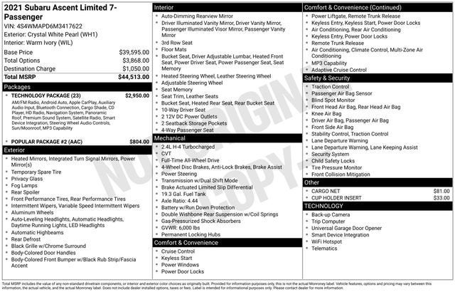 2021 Subaru Ascent Limited