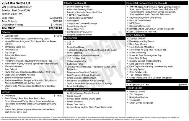 2024 Kia Seltos EX FWD CVT 2.0L I4 MPI Steel Gray